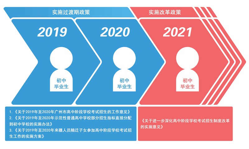 我市现行中考政策3份文件有效期将分别于2018年12月和2019年4月届满。根据省教育厅要求,作为试点市之一,广州市须从2021年开始实施高中阶段学校考试招生制度改革,改革实施前的2019年至2020年为过渡期。我市在现行中考政策3份文件的基础上进行修订,形成了过渡期政策3份文件,实施对象是2019年和2020年的初中毕业生;根据国家和省的要求,拟定了改革政策文件,实施对象是2021年至2023年的初中毕业生。经市人民政府常务会议审议、公开征求意见以及市法制办审查同意,现予以印发。