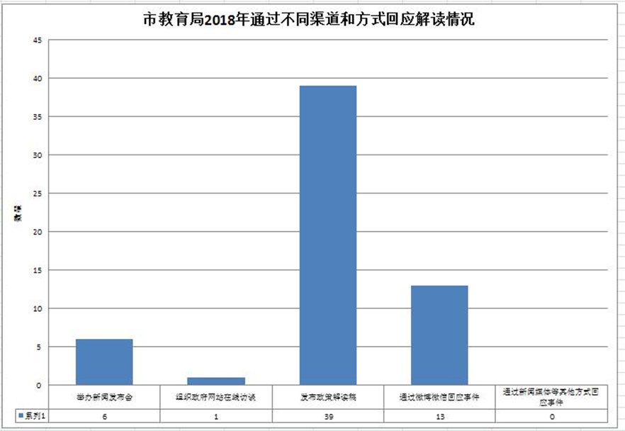 回应公众关注热点或重大舆情19次(不同方式回应同一热点或舆情计1次)。通过不同渠道和方式回应解读情况:举办新闻发布会6次,组织政府网站在线访谈1次,发布政策解读稿39篇,通过微博微信回应事件13次,通过新闻媒体等其他方式回应事件0次。