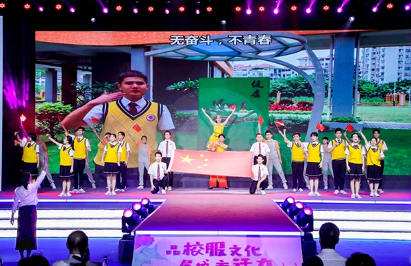 ▲南沙区东涌中学精彩演绎《活力东中荣耀湾区》,突显学子们勇于探索、激情飞扬的精神风貌,展望湾区美好未来。