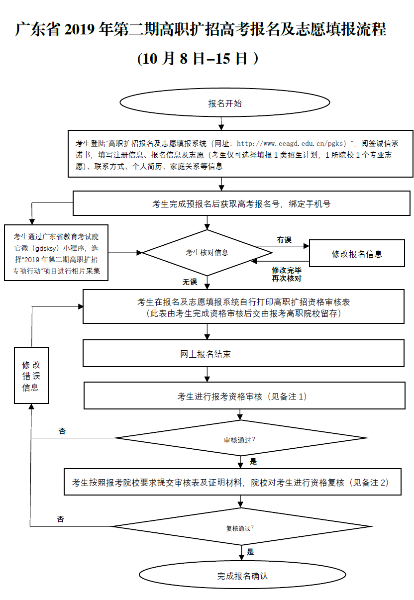 为进一步方便高职扩招考生进行高考报名及志愿填报,广东省招生办公室对考生报名及志愿填报流程进行了优化。10月8日至15日高职扩招考生报名及志愿填报期间,考生不须再到报名点现场领取考生号及报名确认,从领取报名号到报名确认、填报院校专业志愿均在网上操作完成。
