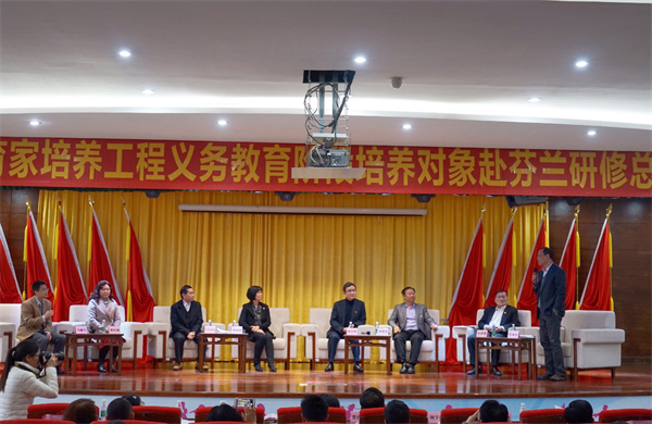 3月7日下午,广州教育家培养工程义务教育阶段培养对象赴芬兰研修总结会在广州科学城中学举行。黄埔区教育局党组书记、局长张建武,党组副书记、副局长陈丽华,电子娱乐城-pg电子娱乐平台 师资工作处负责人王桢桢,宣传交流处处长何宇鸿,市教育评估和教师继续教育指导中心行政负责人邓静红出席会议。会议邀请了北京师范大学教育学部教授、博士生导师毛亚庆、马健生两位教育大咖坐镇,与广州近百名中小学校长共同论道。
