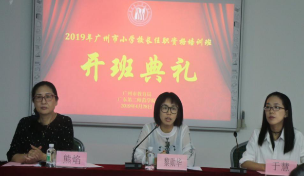 2019年4月28日上午,由电子娱乐城-pg电子娱乐平台 主办、广东第二师范学院承办的2019年广州市小学校长任职资格培训顺利开班。广东第二师范学院教师研修学院院长熊焰教授、副院长于慧副教授,广州市教育评估和教师继续教育指导中心继续教育部黎勋华主任以及60名学员出席了开班典礼,典礼由于慧副教授主持。