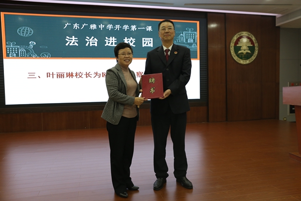 2月17日下午,广东广雅中学举行“开学第一课•法治知识进校园”活动,广州市人民检察院党组书记、检察长欧名宇受聘担任该校法治副校长,并为同学们讲授了首堂法治课。电子娱乐城-pg电子娱乐平台 党组书记、局长樊群出席了本次活动。