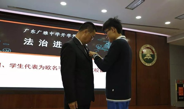 随后,广雅中学为欧名宇颁发聘书,学生代表为其佩戴校徽。欧名宇便以“法治副校长”的身份,以“培养规则意识,守护法治精神”为主题为该校学生上了生动的开学第一课。他从常见的违反规则现象引出规则意识话题,指明法律是最高的社会规则,围绕古代法字“灋”的寓意讲授了规则与法治的重要意义,并通过讲解青少年实施犯罪及被侵害的三个典型真实案例,教育同学们认识规则、敬畏规则、遵守规则,并运用规则和法律保护自己的权益。活动最后,市检察机关还开展了丰富多彩的法治嘉年华活动。